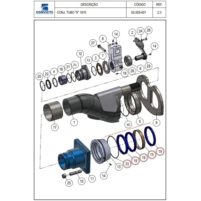 Aplicação: Bomba CONVICTA modelo 1810 / 1510 / 1807 (Beton-Bomba Convicta) - compatível com modelo 1003
