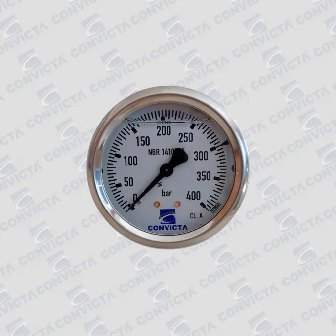 Manometro Ø 63mm - Saida Horizontal - 0-400bar - R-1/4 Bsp C/ Glicerina C/ Logo Convicta - C/garra - Wika