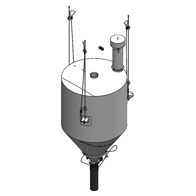 A balança de pesagem de cimento Convicta é composta de um corpo cilíndrico confeccionada em chapa astm A36, 1/8” (3,175 mm de espessura) e com capacidade nominal de m3 – max. 1 ton, (Ø1172 x 2.802mm altura), 1 respiro da balança fabricado em curva de 3” com mangote e abraçadeiras para direcionamento do cimento para o ponto de carga.