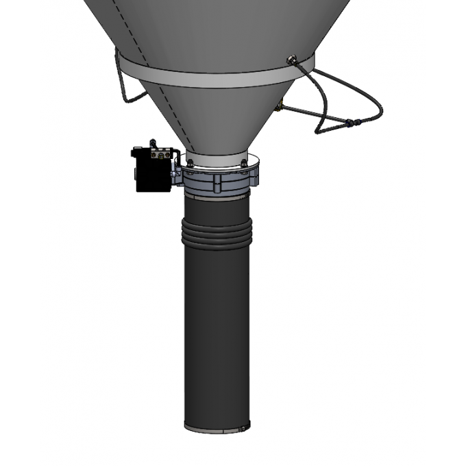Sistema de aeração para descarga de cimento com 2 vibrofluidificadores no cone inferior e 1 válvula pneumática solenoide 2 vias 220V.
