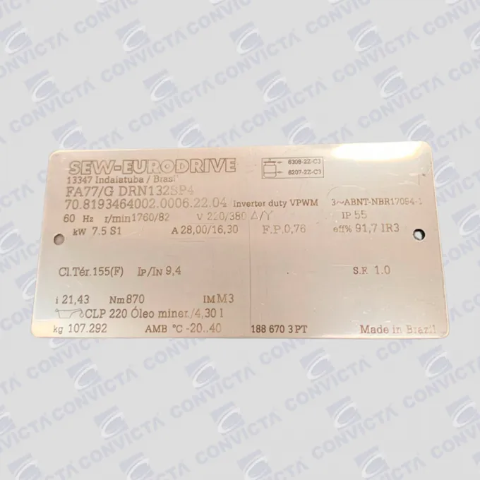 Motoredutor 10,0cv Sew Fa77/g Drn132sp4 82rpm 60hz - Eixo 50mm Motoredutor 10,0cv Sew Fa77/g Drn132sp4 82rpm 60hz - Eixo 50mm