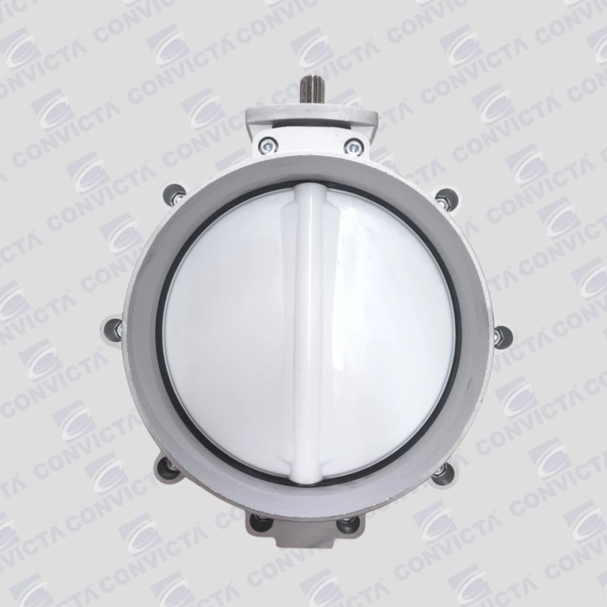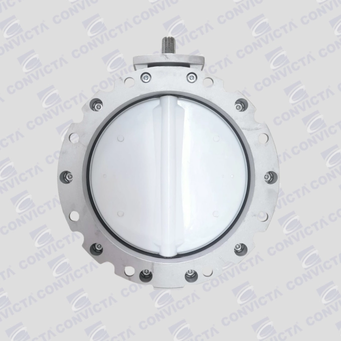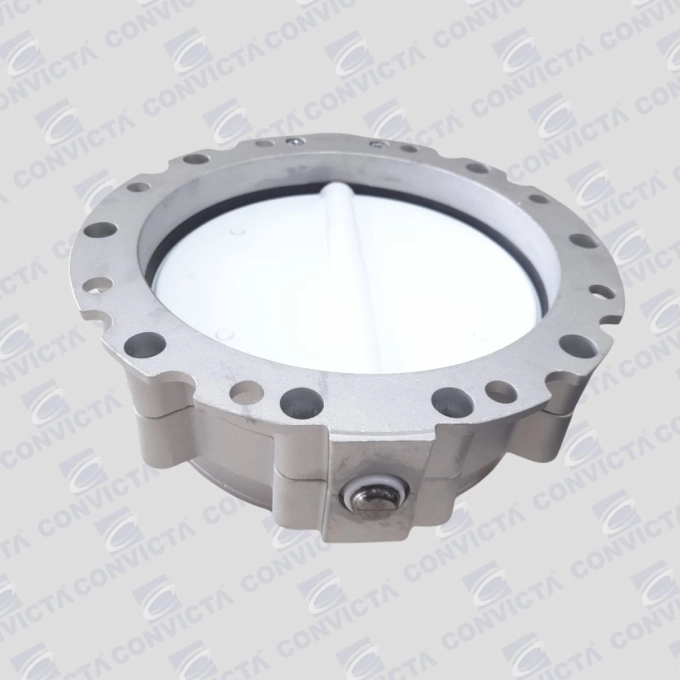 Descrição: Válvulas borboleta flange/colarinho são usadas em todo tipo de material em pó e granular em plantas de processamento onde é requerida interceptação da alimentação por gravidade ou transportado pneumaticamente de materiais secos. São instaladas abaixo de funis, silos, roscas ou outros tipos de transportadores, ou para interceptar dutos de transporte pneumático.