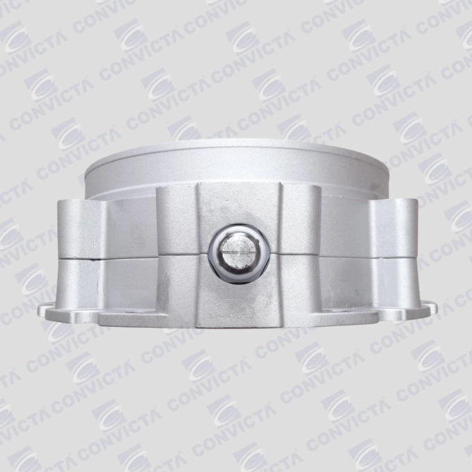 Características: Com flange na parte superior e colarinho na parte inferior adequada para fixação de junta flexível. Corpo em Alumínio e Disco de ferro fundido com revestimento de EPDM